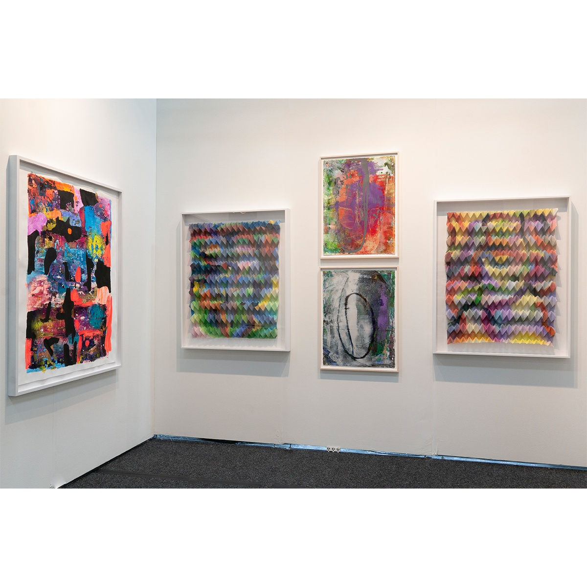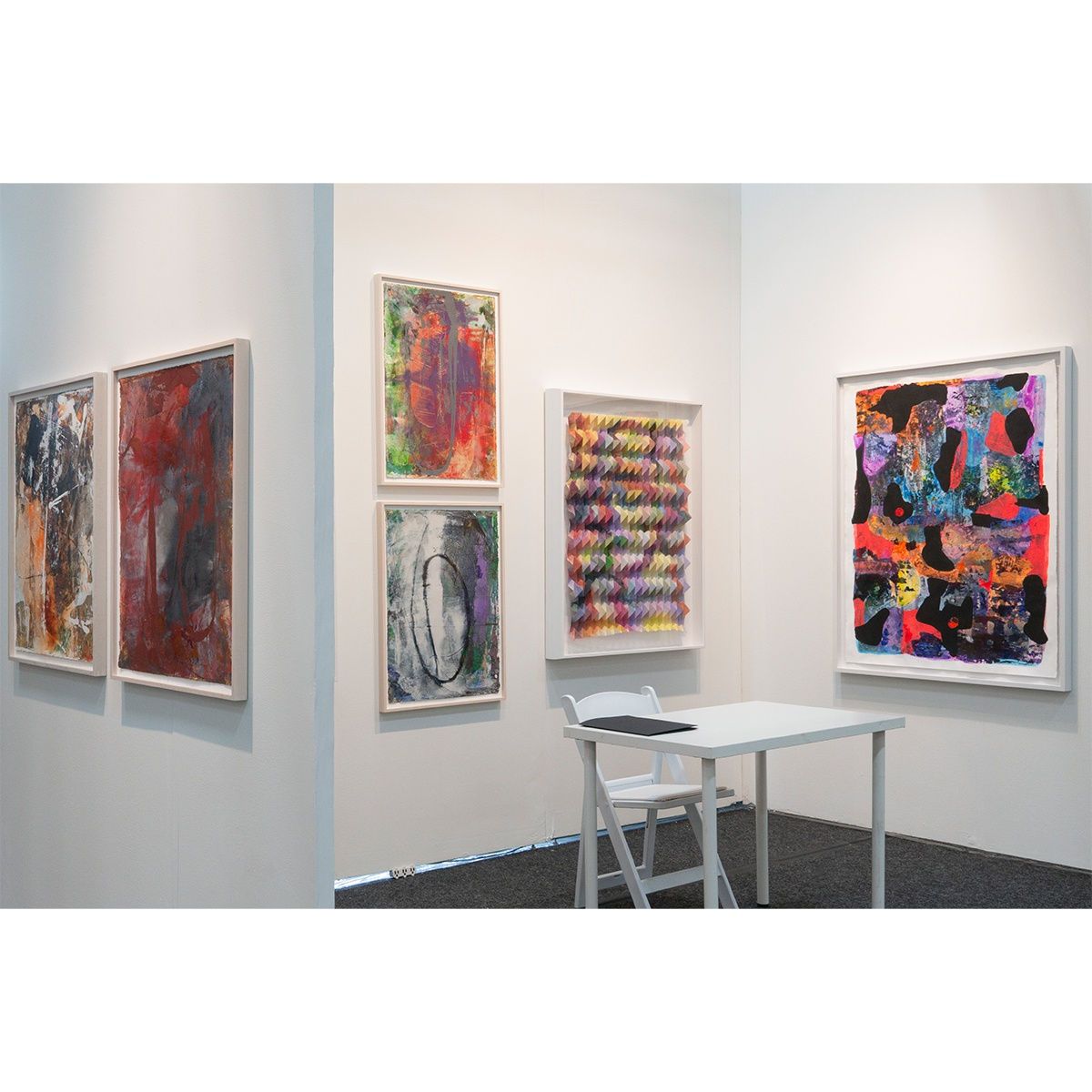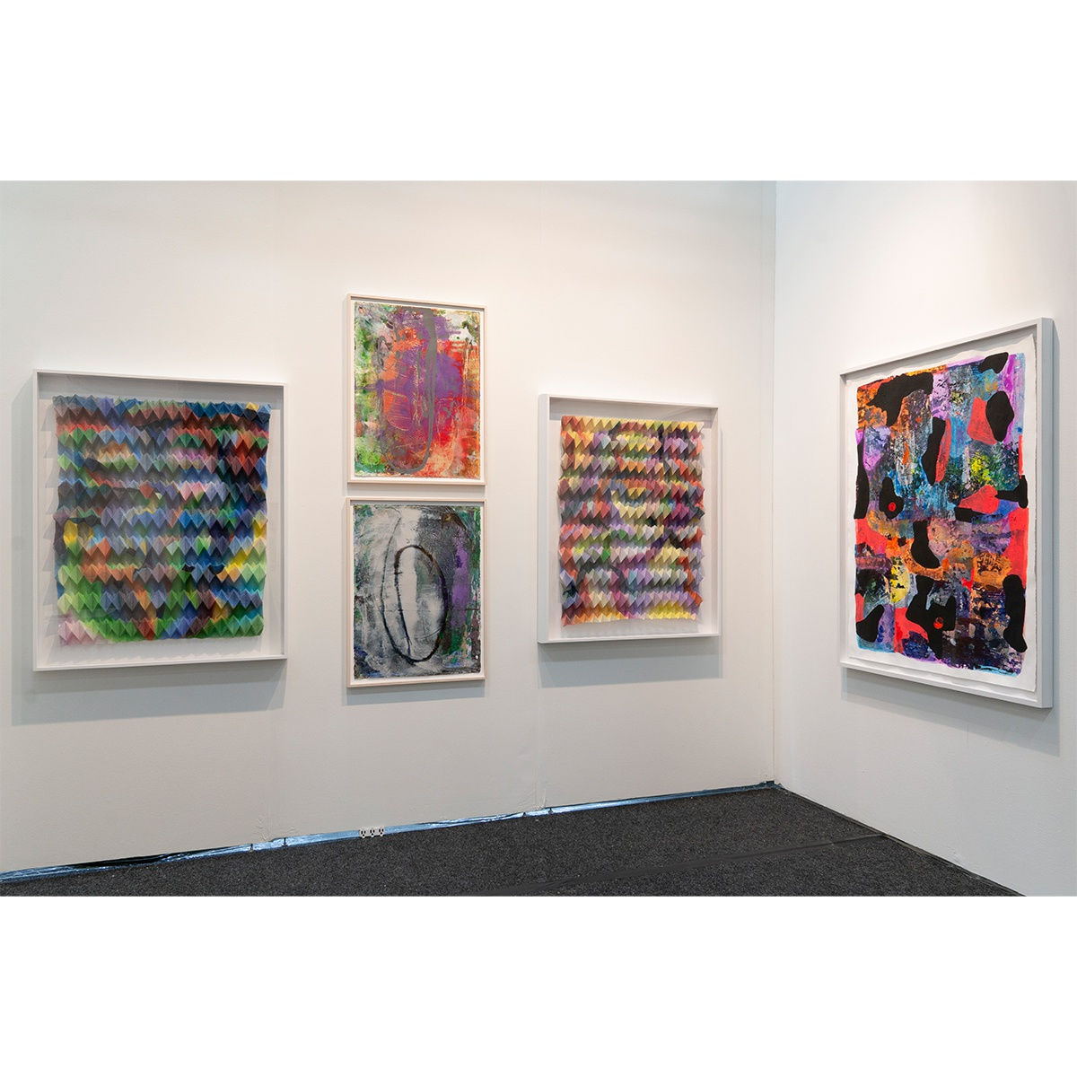 Kevin Francis works with found paper, an embodiment of discarded time. Through his abstracted landscapes, grid-like compositions and distinct form of mark-making, his creations, which are both organic and structured, illustrate the interplay between line and abstraction.The theme of duality in Francis’ work is physically evident both through his use of subtle, tonal ranges juxtaposed against vibrant bursts of color, and his compositions filled with playful and explorative abstraction, calling on the viewer to employ their reflexive instincts to read the paintings.